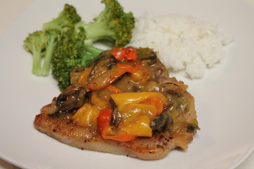 Place the pork chops into the pan, and brown each side. Once browned, place the pork chops in a Roast dish.