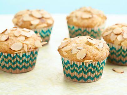 Divide the batter among the prepared muffin cups. Sprinkle the almonds and then the remaining 1 teaspoon of sugar over the muffins. Bake until the muffins just become pale golden on top, about 20 minutes. Cool slightly. Serve warm or at room temperature.