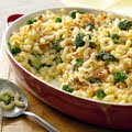 •Transfer mixture to 3-quart shallow baking dish. Sprinkle bread-crumb mixture evenly over top. Broil 1 to 2 minutes or until topping is golden brown.