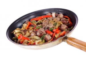 Serve the sausage and peppers over a cup of brown rice and a side green salad with a fat-free dressing.