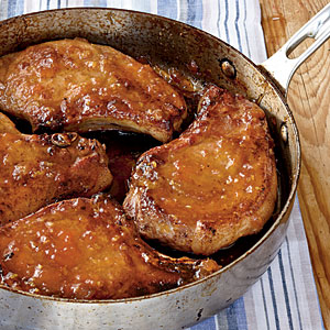 Pan-Roasted Pork Chops with Apricot-Ginger Glaze