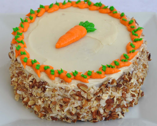 Frosting: ½ c. butter, softened 1 (8 oz.) pkg. cream cheese (soft) 3 ½ c. powdered sugar ½ tsp. vanilla ½ c. coursely chopped walnuts -- Cream butter & cream cheese. Add sugar & vanilla & beat until smooth. Frost & sprinkle with walnuts