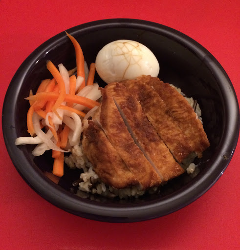排骨飯 (pai gu fan) is a Taiwanese dish consisting of fried pork schnitzel, white rice, pickled vegetables and a tea egg. It is one of my favorites, so I decided to lighten it up in a serious way.