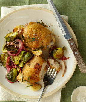Crispy Chicken Thighs with Roasted Brussels Sprouts