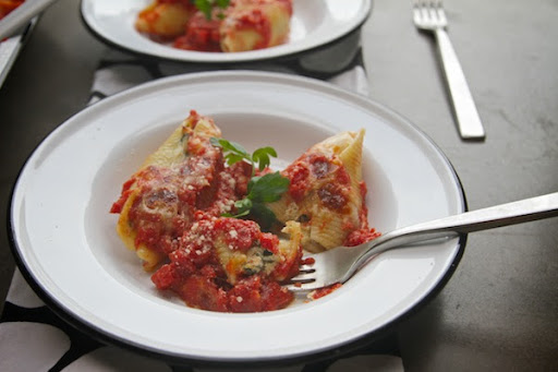 Cook jumbo shells in a large pot of boiling water according to instructions. Drain noodles, and lay shells on a baking sheet lined with paper towels. Set aside to cool.