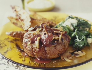 Sliced Steaks with Porcini Sauce and Boursin Creamed Spinach