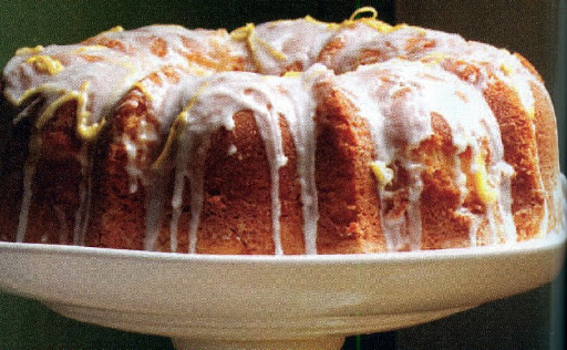 6. To make the glaze, combine the powdered sugar, lemon juice, and zest in a bowl, and beat until smooth. While the cake is still warm, poke holes into the surface with a skewer and drizzle the lemon glaze evenly over the cake.