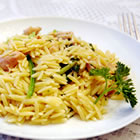 1. Bring a large pot of lightly salted water to a boil. Add orzo pasta, cook for 8 to 10 minutes, until al dente, and drain.