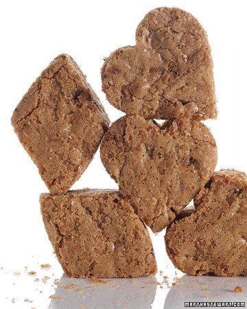 Bake until a cake tester inserted in the center comes out clean, 35 to 40 minutes (do not overbake). Transfer to a wire rack to cool completely before turning out of pan onto a cutting board. Peel off parchment paper; cut blondies into 3-inch squares or into suit shapes with 1 1/2- to 2-inch cookie cutters. Just before serving, dust half with confectioners' sugar, if desired
