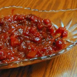 In a medium saucepan, boil water and sugar until the sugar dissolves. Reduce the heat to simmer, and stir in cranberries, pureed orange, apple, pear, dried fruit, pecans, salt, cinnamon, and nutmeg. Cover, and simmer for 30 minutes, stirring occasionally, until the cranberries burst. Remove from heat, and let cool to room temperature.