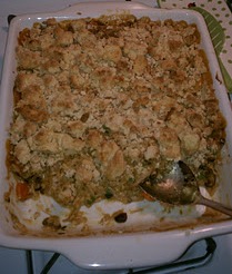 We wanted a chicken pot pie for dinner without having a soggy crust or to prepare a crust and bake it. We also wanted to avoid using a canned biscuit... so we found this recipe!