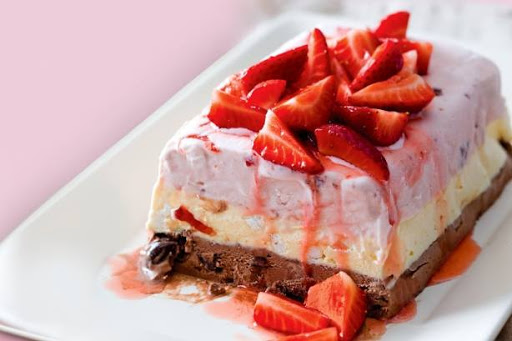 Soften vanilla ice-cream in a large bowl. Fold meringue through ice-cream. Spoon over strawberry ice-cream mixture. Smooth surface. Freeze for 2 hours or until firm.