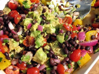 Just before you're ready to serve the salad, fold the avocados into the salad. Check the seasoning and serve at room temperature.