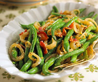 - 2 1/4 pounds fresh green beans (or two 9-ounce packages and one 16-ounce package frozen whole or cut green beans)