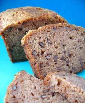 No need to preheat the oven, just lightly grease an 8 1/2 x 4 1/2 inch baking pan (not a 9×5).