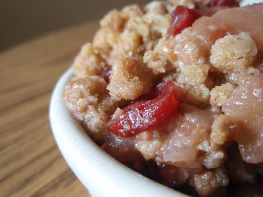 Peel, core, and cut the pears and apples into large chunks. Coarsely chop the cranberries. Place the fruit in a large bowl and add the zests, juices, sugar, and flour. Pour into a 9x12-inch oval baking dish.