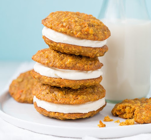 Drop dough 2 Tbsp at a time (32g each. You can roll them into balls for more even rounds - the dough is sticky but I rolled half of mine just to compare) onto Silpat or parchment paper lined baking sheets, spacing cookies at least 2-inches apart. Bake in preheated oven 12 - 13 minutes until centers no longer look doughy. Allow to cool on baking sheet several minutes then transfer to a wire rack to cool. Cool completely then sandwich 2 cookies together with the cream cheese filling. Store in an airtight container in a single layer.