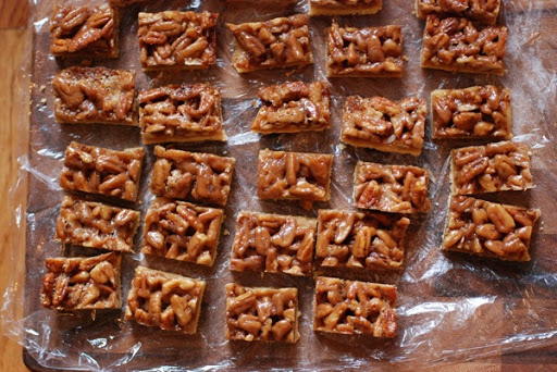 You can either top warm cupcakes or let them cool, just spoon praline over cupcakes