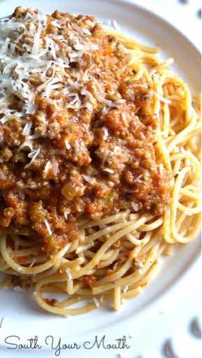 In a large skillet, warm oil over medium heat and saute bacon until crisp. Remove bacon. Add onion, garlic, celery, carrots and saute until soft then add mushrooms and saute for a little while. In another skillet, brown all the meat. Drain off excess fat. Add meat and bacon back into pan with veggies. Add tomatoes, water, wine, basil, oregano, crushed red pepper, salt and pepper. Cook uncovered for 2 hours, stirring occasionally. At this point you can add the optional cup of cream, butter and cheese. Stir until incorporated then serve over hot pasta.
