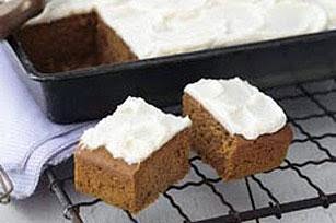 BEAT cream cheese, butter, milk and vanilla in large bowl with electric mixer on medium speed until well blended. Gradually add sugar, beating after each addition until well blended. Spread over cooled cake. Cut into pieces to serve. Store any leftovers in refrigerator.