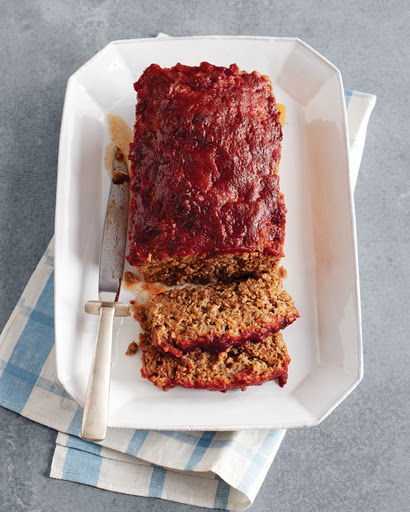 Brush mixture over meatloaf and put in oven with a baking pan on the rack below to catch drippings. Cook until a meat thermometer inserted in the middle reads 160°, about 90 minutes. If top becomes too brown, cover with foil and continue cooking.
