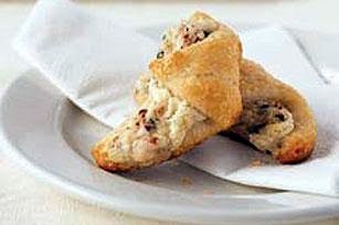 SEPARATE each can of dough into four rectangles; firmly press perforations together to seal. Spread each rectangle with 2 rounded tablespoonfuls of the cream cheese mixture. Cut each rectangle into 12 wedges. Roll up wedges, starting at short ends. Place, seam-sides down, on greased baking sheet.