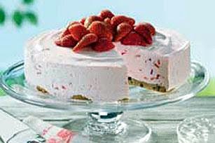 FREEZE 6 hours or until firm. Remove from freezer; let stand in refrigerator 15 min. to soften slightly. Top with the halved strawberries just before serving. Store leftover dessert in freezer.