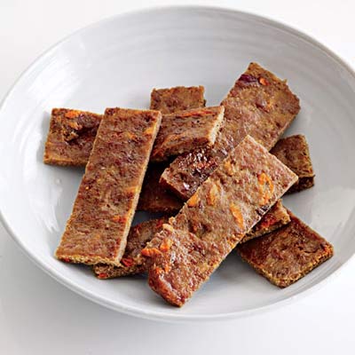 In a bowl, combine the turkey, carrot, cranberry sauce and EVOO. Spread the mixture evenly on a 9-by-11-inch foil-lined baking sheet; bake for 2 hours.