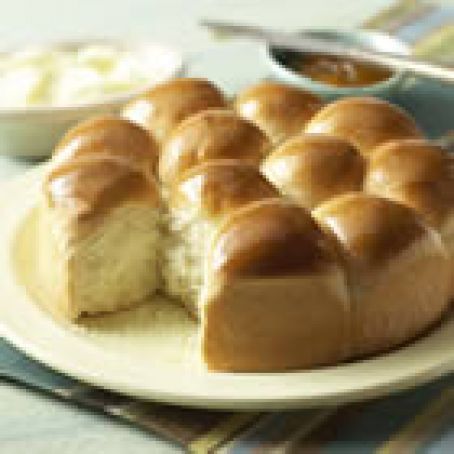 2.Divide dough into 12 equal pieces; shape into balls. Place in greased 8-inch round pan. Cover; let rise in warm, draft-free place until doubled in size, about 30 minutes.