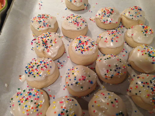 2 - Dip the top of each cookie into the glaze and let set, rounded side up, on a rack set over a piece of parchment paper. Sprinkle with non-pareils, if using. Allow the glaze to set, about 20 minutes. Store the cookies in an airtight container at room temperature for up to 5 days.