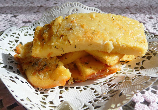 Turn batter out into 9 x 13-inch (23 x 33 cm) glass baking dish and press down evenly, using plastic wrap, to make things easier. Remove plastic wrap. Bake 15 to 20 minutes in 350 deg. F (180 deg. C) oven. Brush top of garlic bread with Garlic Butter Topping. Sprinkle with Monterey Jack cheese. Bake another 5 minutes. Cut into 20, half inch sticks and then cut down the center of the pan. Serve at room temperature. Refrigerate leftovers and nuke garlic bread sticks briefly for 15 seconds or so to warm them.