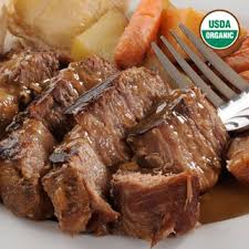 Mix gravy and soup. Pour over roast in oven safe dish with cover.