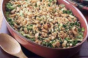 SPOON into 2-quart baking dish. Mix remaining crushed crackers and butter; sprinkle over broccoli mixture.