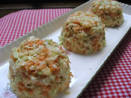 Ahora preparamos la salsa: Vertemos todos los ingredientes en el vaso de la licuadora y procesamos de 20 a 30 segundos. Lo echamos sobre la ensalada y lo mezclamos todo muy bien. Dejar reposar en la nevera al menos. Debe de estar al menos 4 horas en la nevera, y cada vez que se saque de la nevera eliminar el poco agua que eche la col, escurriendo el recipiente. Listo para comer.