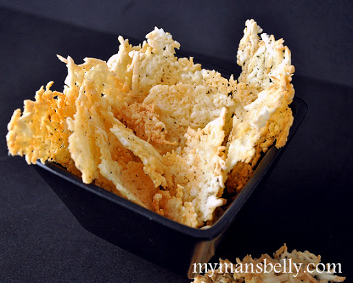 Preheat oven to 375 degrees. Line a baking sheeet with parchment paper. Use a tablespoon to scoop grated parmesan cheese. Drop level tablespoons of cheese 3-inches apart on lined baking sheet. Use the back of the tablespoon to flatten out cheese mounds. Bake in oven on the middle rack for 6 - 7 minutes, or until golden. Remove from oven and transfer to wire racks; cool two minutes. Transfer to paper towels to remove any excess oil. Repeat with remaining cheese.