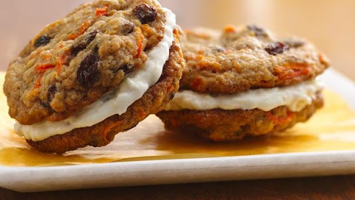 5. Turn half of cookies over, bottom sides up. Spread each with 1 Tbsp. chilled Cream Cheese Icing. Top with remaining cookies, bottom sides down, and press gently to spread filling to edges of cookies.