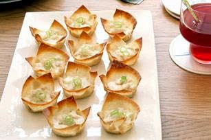 Bake won ton wrappers in muffin cups at 350°F for 5 to 7 min. or until lightly browned. Fill evenly with crabmeat mixture and bake 6 to 8 min. or until filling is heated through.