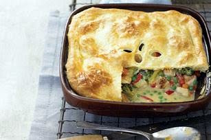 UNFOLD pastry sheet; place over chicken mixture. Fold under edges of pastry; press onto top of baking dish to seal. Brush pastry with egg. Cut several slits in pastry to permit steam to escape.