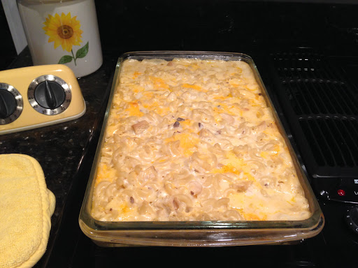 Preheat oven to 350*. In a large casserole, combine all ingredients, mixing well. Bake, covered 35-45 minutes. Remove cover, bake 10-15 minutes longer. Serve immediately.