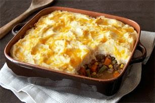 We've taken a classic recipe and gave it a makeover. We omitted butter from the mashed potatoes and added BREAKSTONE'S Reduced Fat or KNUDSEN Light Sour Cream and cheese for a great taste and creamy texture. In addition, we used extra lean ground beef in place of regular ground beef. These small changes result in a savings of 90 calories and 15 grams of fat per serving!