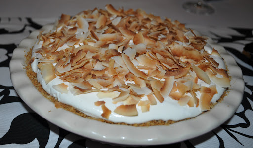 Connie's Fabulous Macadamia Coconut Cream Pie with Caramel Drizzle
