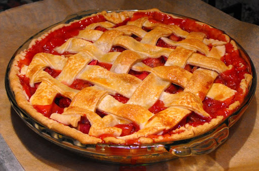 Strawberry rhubarb pie is sweet and tart, a perfect summer dessert