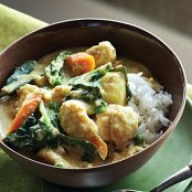 Thai Coconut Curry Halibut with Fresh Sauteed Spinach
