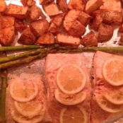 One sheet pan bakes this salmon, potato and asparagus dinner