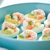 Shrimp make a delicious and dramatic garnish for stuffed eggs