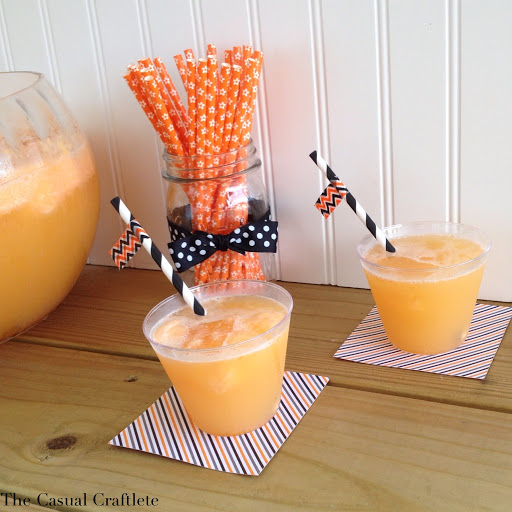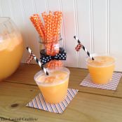 This orange sherbet punch with orange kool aid ice cubes is a great dessert drink idea to serve at your Halloween