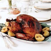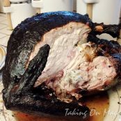 A straightforward brined and smoked turkey, stuffed with Italian sausage, apples and onions