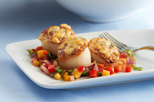 Gorgonzola Crusted Scallops with Mango & Sweet Onion Ratatouille