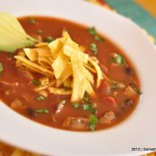 Turkey soup flavored with chipotle peppers, fresh cilantro, queso fresco, and garnished with lime wedges and avocad...