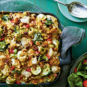 Broccoli and red bell peppers adds a great combo of colors/flavors and the cheese filled tortellini with chopped pe